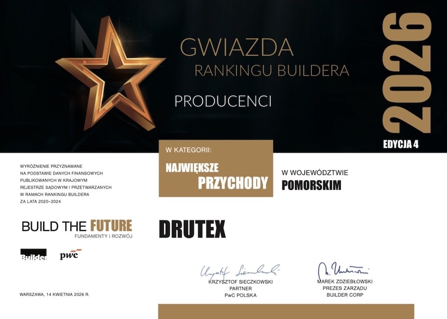 Drutex z prestiżowym certyfikatem Gwiazdy Rankingu Buildera 2026