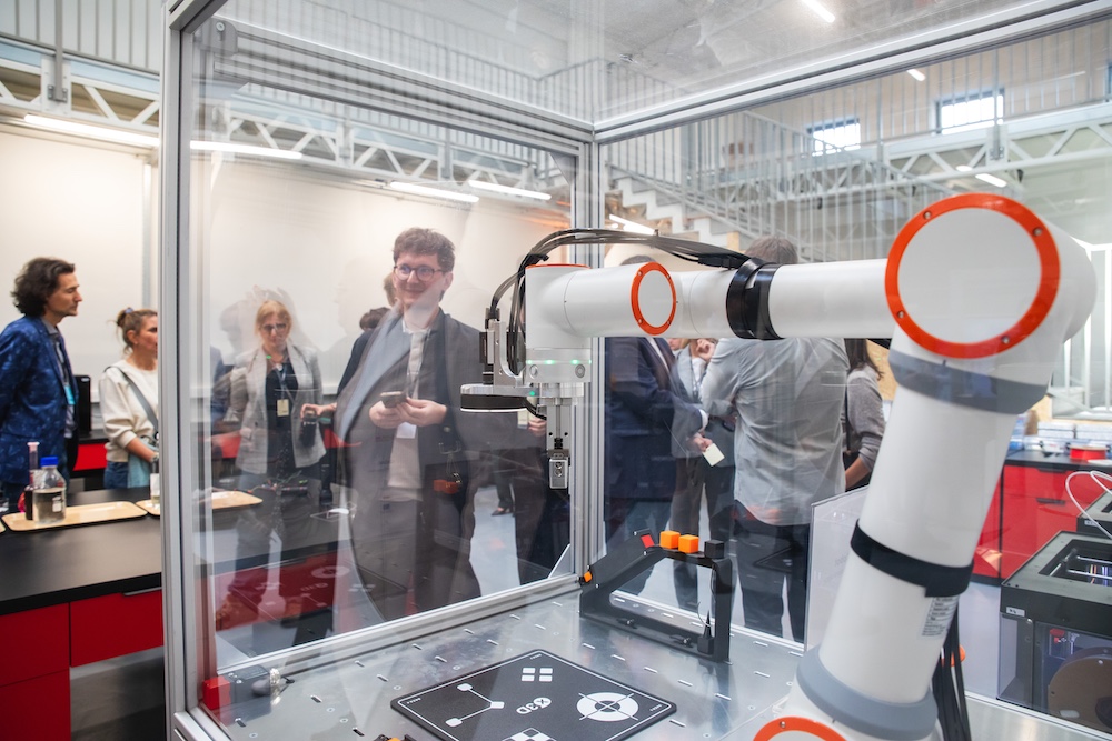 Podczas wydarzenia goście mieli okazję zajrzeć do wnętrza laboratorium i samodzielnie przetestować pięć interaktywnych stacji technologicznych. Na stanowisku druku 3D na ich oczach powstawały gadżety, a w strefie robotyki ramię robotyczne sprawnie reagowało na komendy, prezentując precyzję i możliwości automatyzacji. Eko-projekty połączone z pokazem szycia i haftu promowały ideę upcyklingu. Elektronika i IoT przyciągały uwagę demonstracją sterowania światłem oraz prezentacją drona w akcji. Całość dopełniała strefa Design Thinking – interaktywna ściana pomysłów, na której uczestnicy mogli zostawić własne inspiracje i rozwiązania.